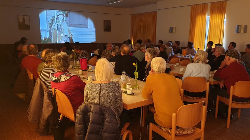 Letzten Sonntag strömten – trotz herrlichem Frühlingswetter – rund 60 Besucher zu unserem Dorfcafe in den Gemeindesaal. Neben einem leckeren Kuchenbuffett und Kaffee satt war es vor allem die Aufführung des Films „De Bur“, der die Leute zum Dorfcafe lockte. Nachdem sich jeder mit Kaffee und Kuchen versorgt hatte, startete der Film. Viele wollten das Theaterstück noch einmal erleben. Manche hatten die Aufführung im September 2019 verpasst und freuten sich, dass sie jetzt die Gelegenheit hatten, das Stück zumindest als Film zu sehen. Herzlichen Dank für das große Interesse! Wir haben uns über den zahlreichen Besuch sehr gefreut!