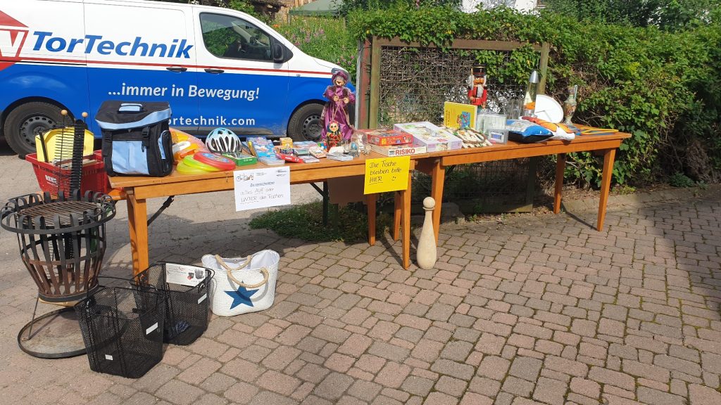 So fanden viele Sachen einen glücklichen neuen Besitzer. Geboten wurde nahezu alles: Von Kindersachen, Spielzeug, Bücher, Geschirr und Hausrat über Zimmerpflanzen, Sport- und Freizeitartikel, Kleidung und Schuhe bis hin zu Möbeln war alles dabei. Manche Stände waren bereits vor der Mittagszeit so gut wie leergeräumt. Bei anderen blieb etwas mehr liegen. Dabei fiel auf, dass Bücher kaum gefragt waren. Dennoch war es eine gelungene Veranstaltung im Sinne der Nachhaltigkeit.