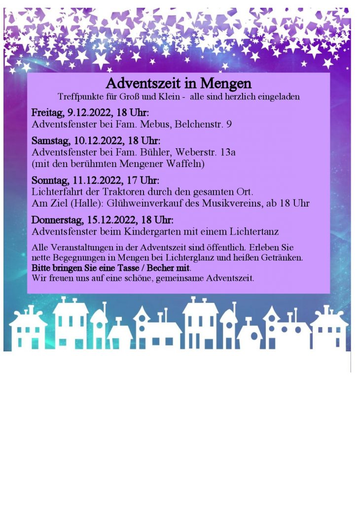 ← Die nächsten Termine der „Adventszeit in Mengen“: