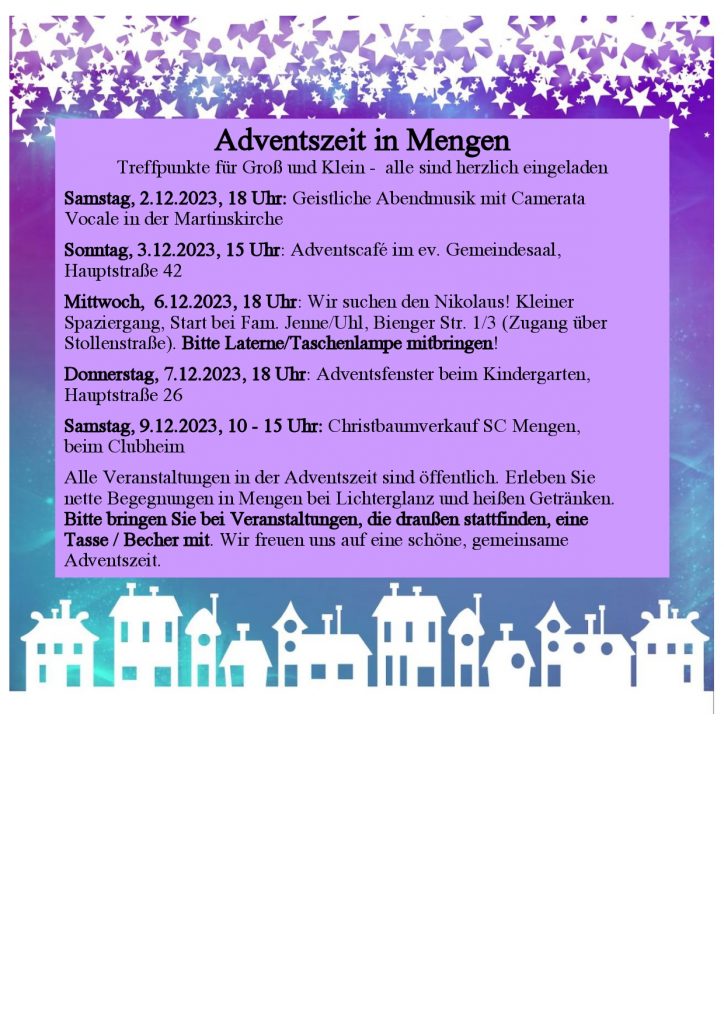 Hier kommt eine Übersicht über die Termine in der „Lebendigen Adventszeit“ bis kommendes Wochenende: