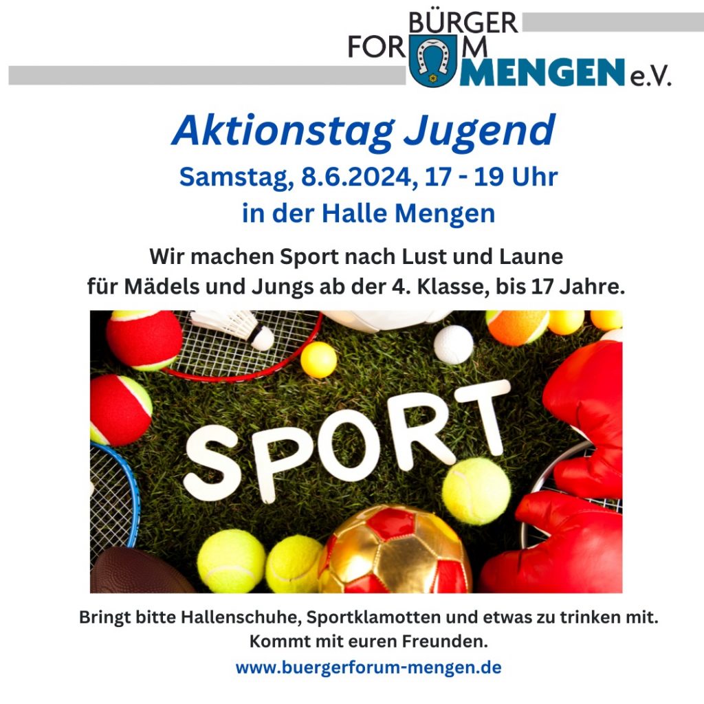 Aufgrund der Ferien, Feiertage und anderweitiger Terminüberschneidungen etc. findet unser nächstes Sportangebot Anfang Juni statt. Hier können sich Kids nach Herzenslust auspowern – Ihr bestimmt, worauf Ihr Lust habt! Für Kids und Jugendliche ab 9 Jahren – in der Halle und / oder im angrenzenden Gymnastikraum. Bringt Hallenschuhe, Sportklamotten und etwas zu trinken mit, kommt mit euren Freunden! Wir freuen uns auf euch!