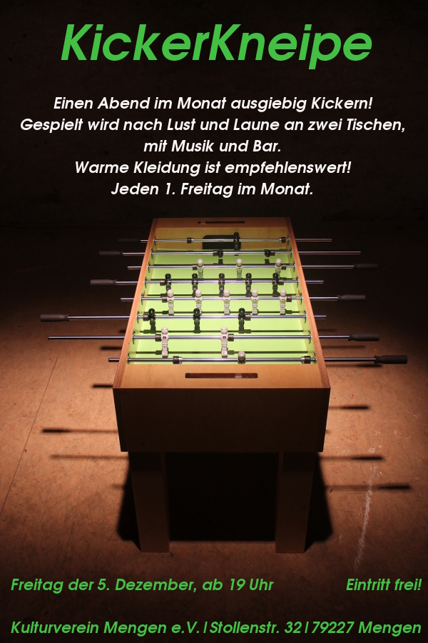 Jeden ersten Freitag im Moment Kickerkneipe beim Kulturverein Mengen!
